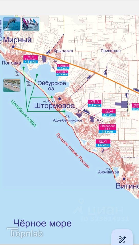 Продам участок в Крыму , Сакский район, вблизи с. Штормовое. Рядом расположено соленое озеро Ойбургское, которое славится своими целебными свойствами. Живописная природа, чистый воздух. самые лучшие пляжи Черного моря - главные преимущества этого района.