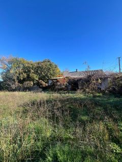 На передней части участка расположен дом и дополнительные постройки ( бытовые помещения и гараж) , остальная часть участка свободна от застройки.