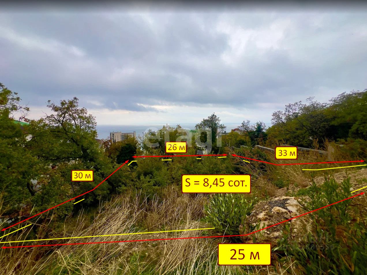 Представляем Вашему вниманию видовой земельный участок площадью 8,45 соток в нижней части пгт Кореиз - курортный район Мисхор.