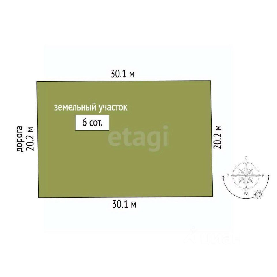 Площадь: 6 соток (ровный, прямоугольной формы)
