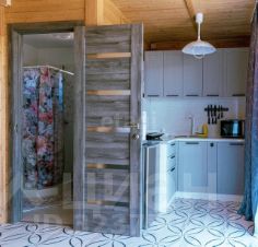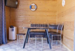 Каждый домик рассчитан на комфортное проживание и оборудован двумя спальнями, функциональной кухней с индукционной плитой, микроволновой печью, холодильником, кулером и всей необходимой посудой. В наличии кондиционеры, вентиляторы, телевизор и стабильный Wi-Fi. Дополнительные удобства включают стиральную машину и фен. Просторная веранда с качелями и обеденной зоной (диван, кресла, столик) создает уютное пространство для отдыха.