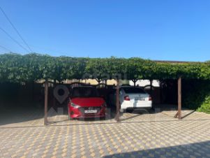 Территория благоустроена: крытая автостоянка, зона барбекю с мангалом из дикого камня, декоративный пруд с водопадом, фонтаном и золотыми рыбками. Для детей оборудована игровая площадка с качелями, горкой и игрушками. Ландшафтный дизайн включает туи, кипарисы, можжевельники, розы, лаванду и другие растения, формирующие приятную атмосферу.