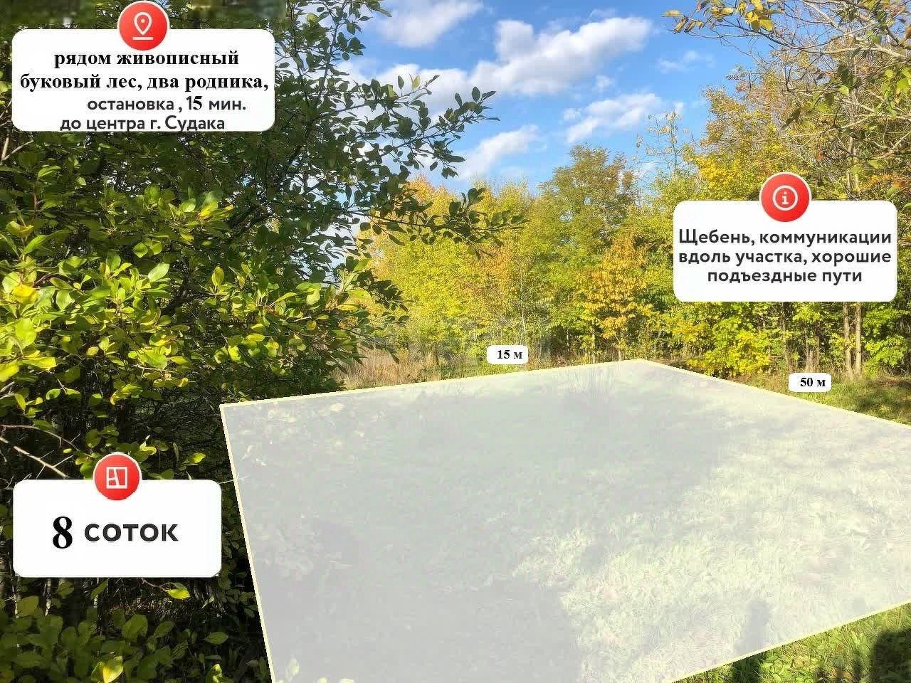 Земельный участок 8 сот в СОТ "Орарий", с. Переваловка, г. Судак. Это идеальное предложение для тех, кто хочет построить уютный дом в экологически чистом и активно развивающемся пригороде Судака.