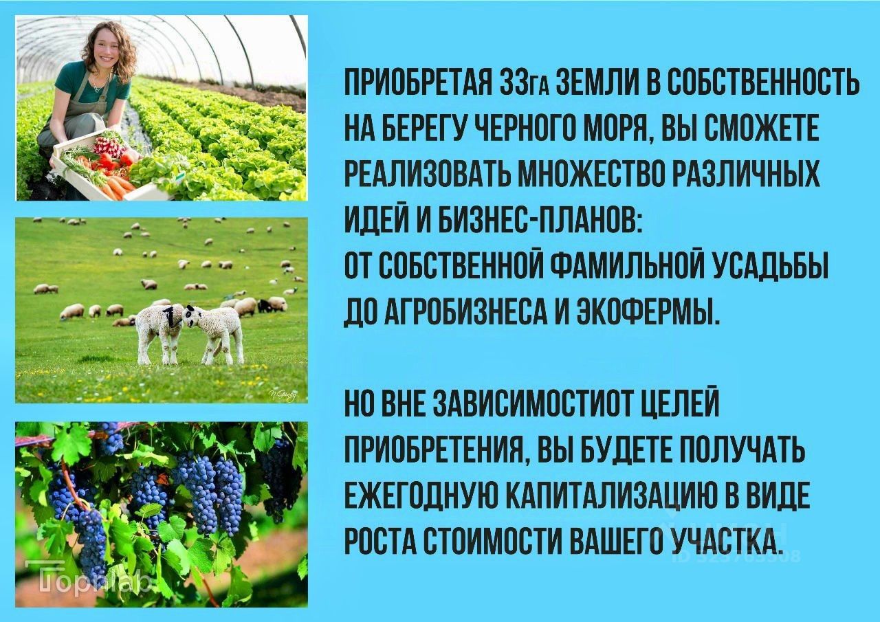 Этот уникальный участок в 33 га — идеальное место для создания процветающего агробизнеса, экологической фермы или вашей фамильной усадьбы с видом на морские закаты.