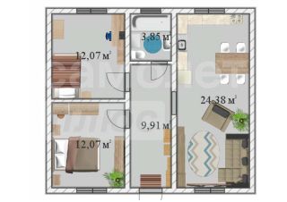 Дом площадью 66 кв м расположен на участке правильной формы 8 соток.