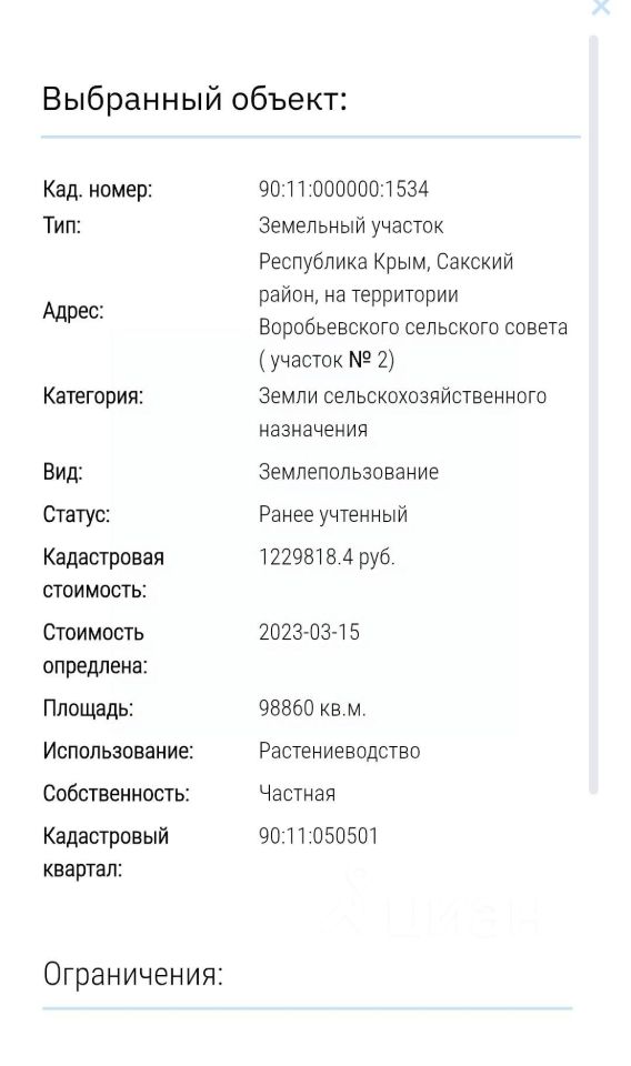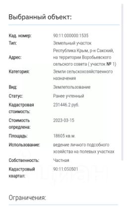 Категория земель : Земли сельскохозяйственного назначения