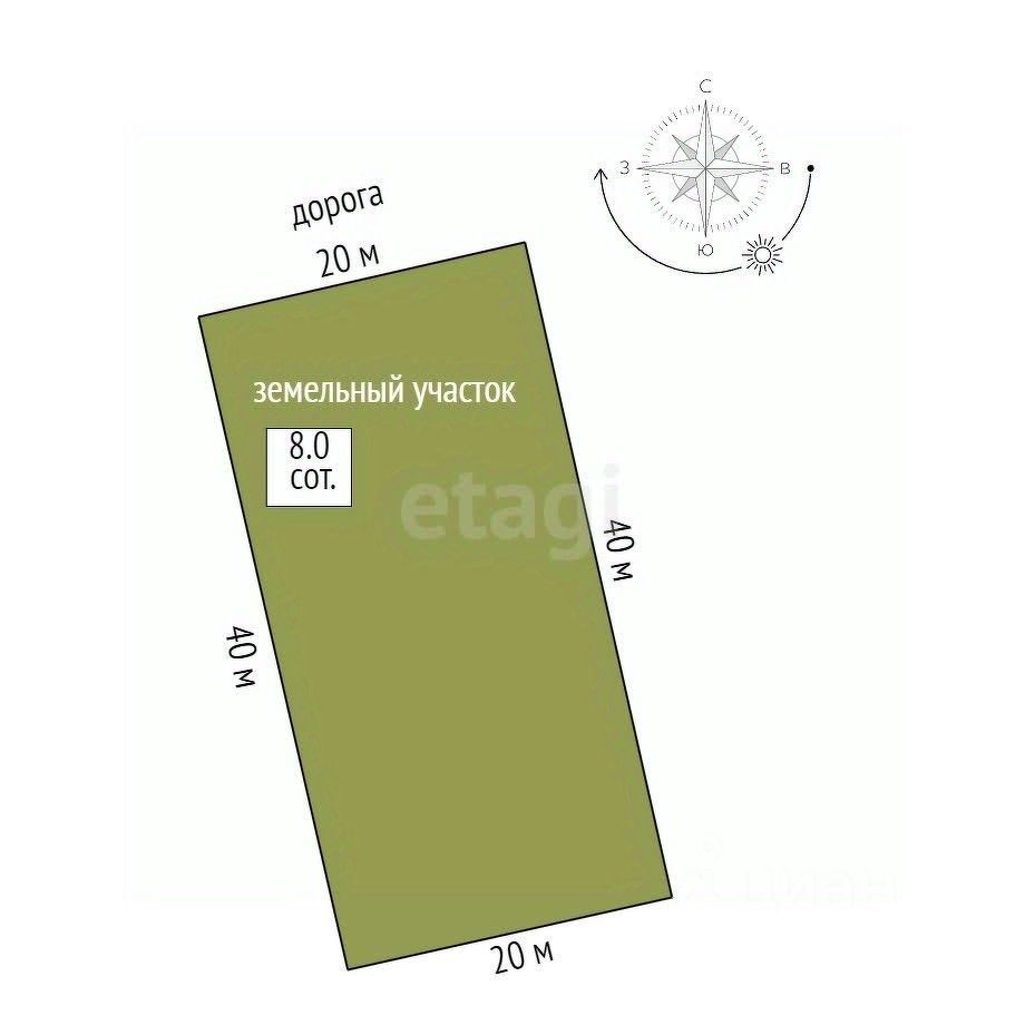 Общая площадь - 8 соток. Участок ровный, прямоугольной формы, напротив 14 дома, через дорогу.