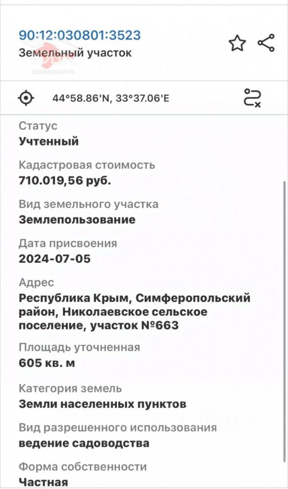 Продаётся участок 6 соток в Николаевке, со статусом Садоводство. На участке возможно капитальное строение и прописка.