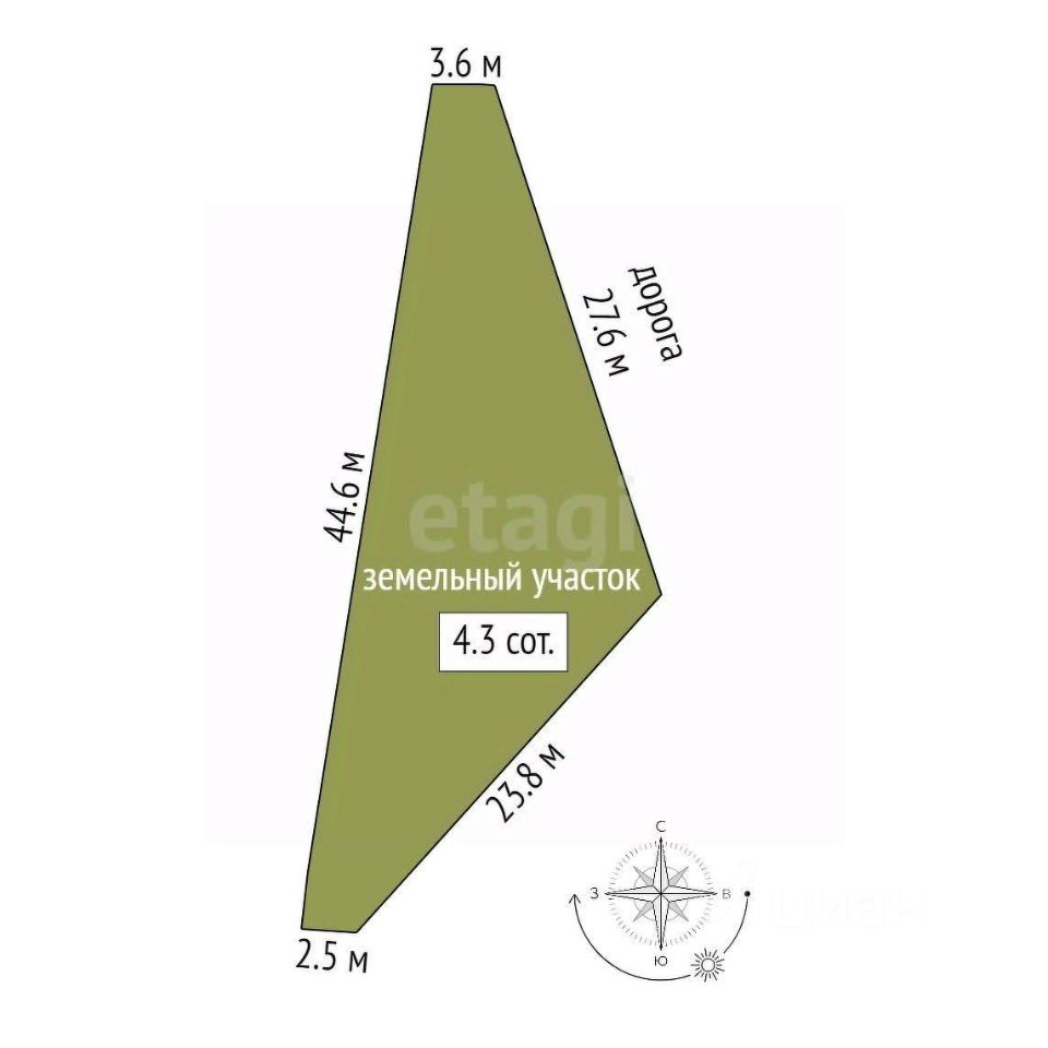 Продаётся участок площадью 4.3 соток в СТ "Аквамарин" треугольной формы, идеально подходящий для ведения садоводства.