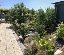 Ключевой особенностью объекта является ухоженный многолетний сад с разнообразными плодовыми деревьями и ягодными кустарниками, включая яблони сортов "Чемпион" и "Семеренко", черешню, алычу, сливу, персик, инжир, хурму, грушу и абрикос. Из ягодных культур присутствуют малина, ежевика, клубника и виноград, что обеспечивает сезонную урожайность и значительную экономию на продуктах.