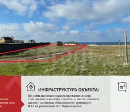 Участок расположен в тихом районе. Всего в километре находится центр поселка с необходимой инфраструктурой — школой, детским садом, магазинами, аптеками и остановками общественного транспорта. Для решения более широких вопросов в 14 км расположен поселок городского типа Черноморское.