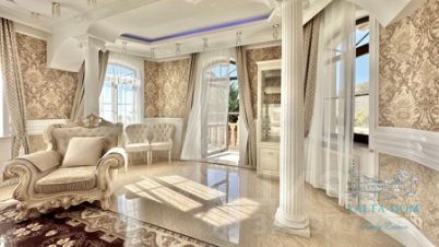 На мансардном этаже: гостиная с выходом на видовую террасу, две спальни, совмещенный санузел с джакузи, детская с зоной гостиной с выходом на видовую террасу, спальня с видом на море, совмещенный санузел.