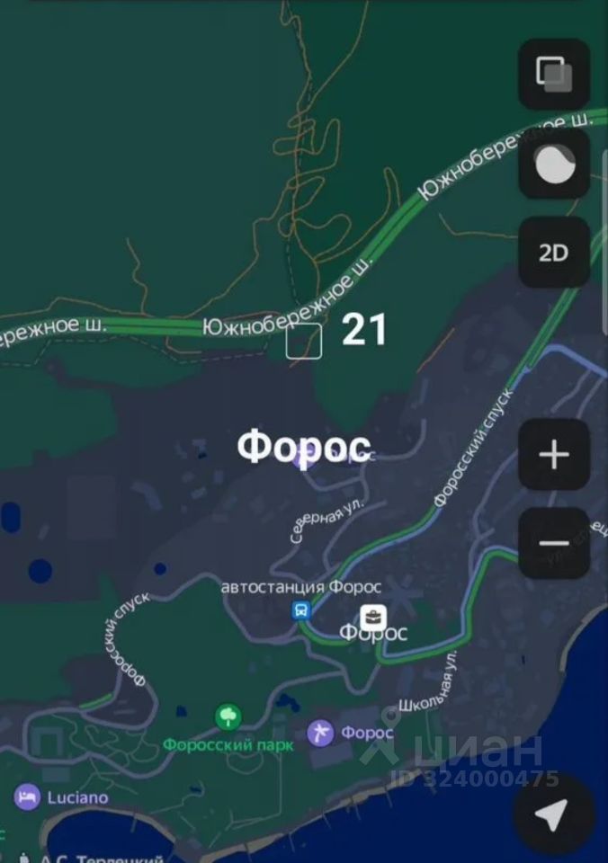 Видовой участок ПГТ ФОРОС., первая линия, съезд с трассы. Ул. Северная, участок , 8.