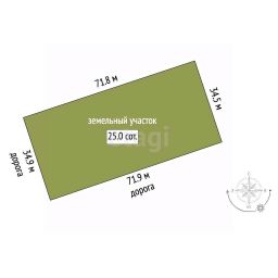Участок характеризуется ровным рельефом и протяженным фасадом вдоль дороги протяженностью 71 метр, что открывает широкие возможности для проектирования.