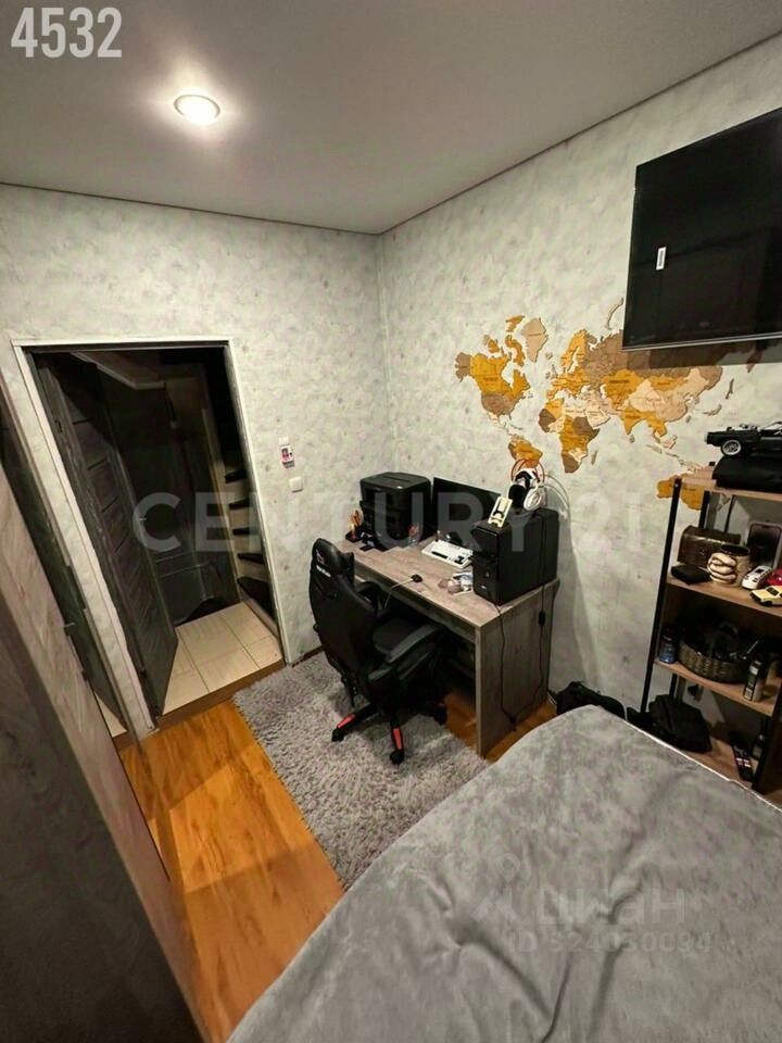 Таунхаус имеет три этажа. На первом этаже прихожая, кухня, подсобное помещение типа прачечной. На втором и третьем - по две комнаты и санузел. Сделан ремонт по дизайн-проекту. Вся мебель и техника остаются новым собственникам.