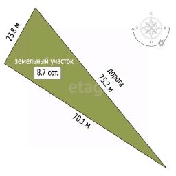 Форма земли треугольная , поверхность ровная, что позволит реализовать любые ваши задумки без особых вложений и хлопот.