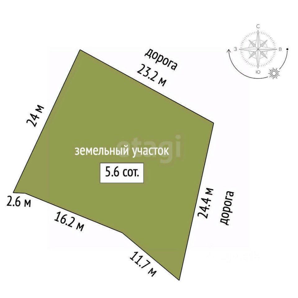 Площадь участка: 5,6 соток достаточно для просторного дома, зоны отдыха и сада.
