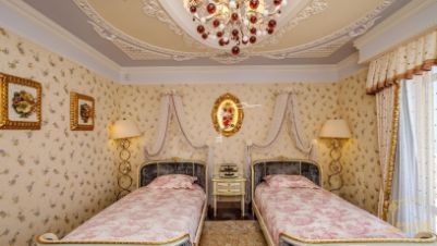 Это исключительно детское пространство со сценой для домашних театральных постановок, восточной комнатой с элементами декораций из знаменитых детских произведений. Кроме того, есть маленькие уборные, и место, где они могут обедать, не отрываясь от творчества.