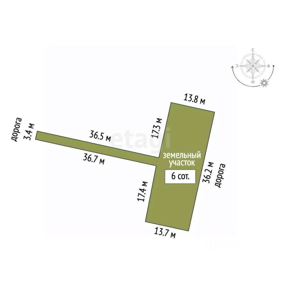 Участок ровный, сухой, с удобным подъездом по грунтовой дороге.