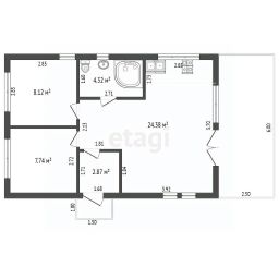 Отделку пола и стен санузла кварцвиниловой плиткой, ламинат на полу в комнатах, монтаж сантехнических приборов и межкомнатных дверей.