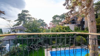 Продается комфортабельный трёхуровневый коттедж площадью 400 м² с огромным участком 40,3 сотки и бассейном в живописном районе Ялты, посёлке Восход.