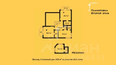 На территории строится двухуровневый гостевой домик, площадью 104 м². Он находится в стадии незавершенного строительства — работы приостановлены, но объект полностью готов к возобновлению.