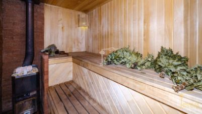-На первом этаже - открытая летняя кухня и баня на дровах;
