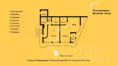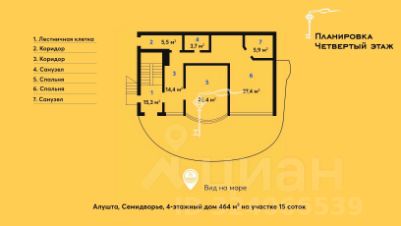 Вилла общей площадью 558 м², выполнена с неповторимым и очень изящным дизайном интерьера. Просторные террасы с великолепным видом на море и видовой бассейн позволяют наслаждаться красивыми пейзажами крымской природы.