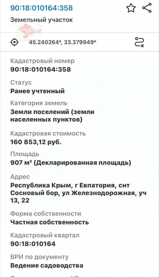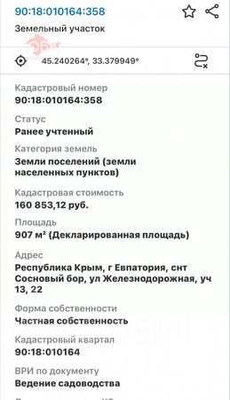 Продается участок в Сосновом бору 22 сотки!!! Участок ровный !!! Рядом свет ,вода, газ!!! До города Евпатория пять минут на машине !!! Не упустите свой шанс приобрести участок своей мечты в Крыму!!!