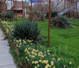 На территории садовые деревья и виноград.