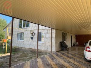 Во дворе плитка и навес на весь двор. Во дворе свободно помещается 2 автомобиля, есть зона отдыха.