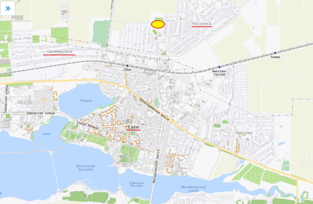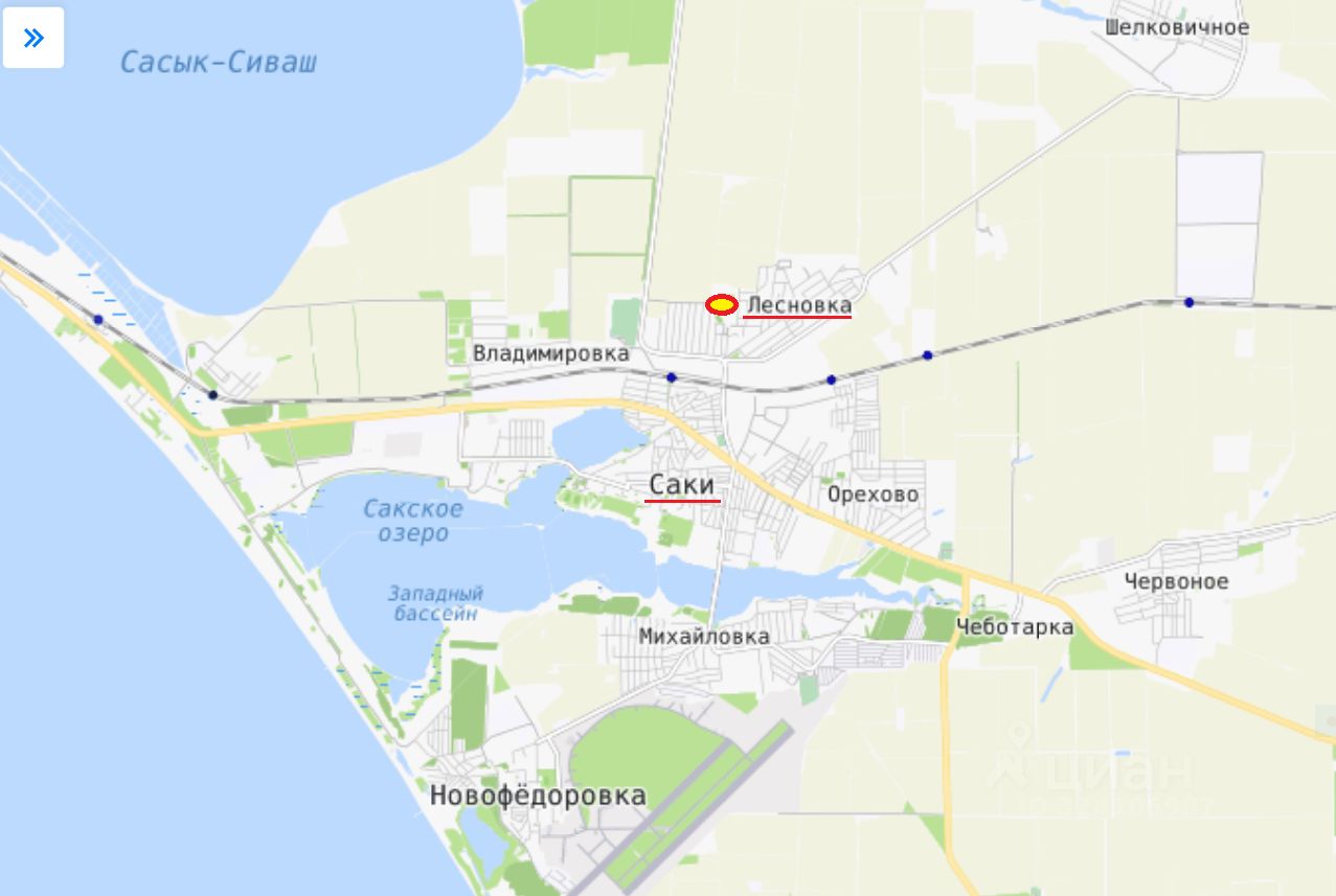 Участок находится в 2,5 км до центра города Саки, и 10км от моря.