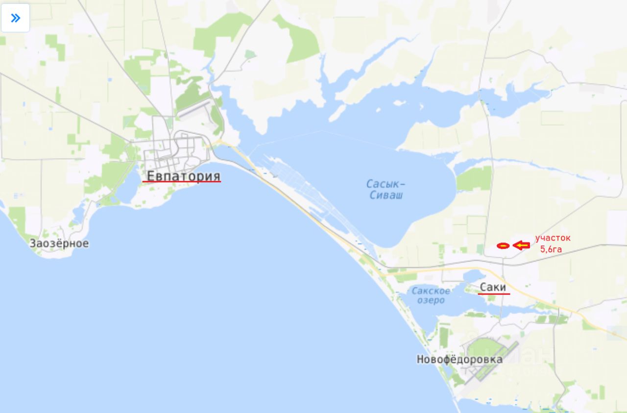 Продам земельный участок площадью 5,6 га, примыкает к с.Лесновка, Сакский район.