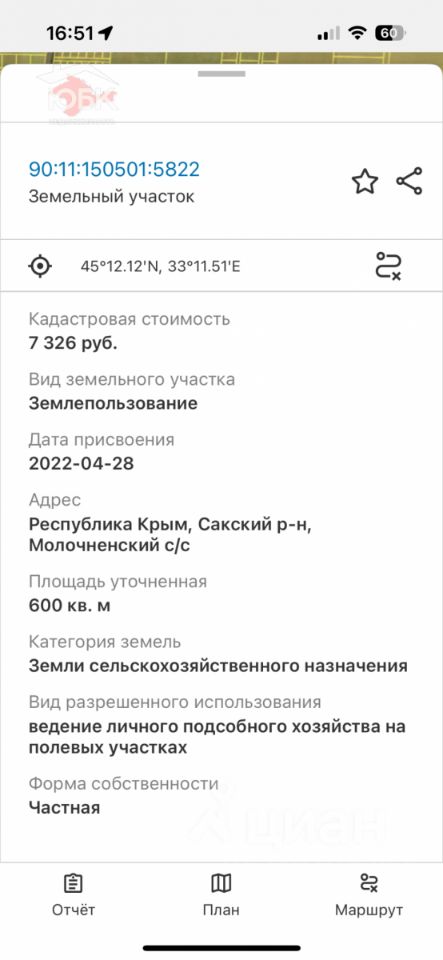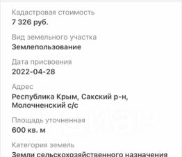 Мечтаете о собственном уголке у моря? Предлагаем к продаже великолепный участок вблизи села Молочное! Вас ждут чистейшие песчаные пляжи и ласковое море всего в 15 километрах от курортного города Евпатория. Это перспективное направление активно застраивается, а значит, ваша инвестиция будет расти вместе с развивающейся инфраструктурой. Обратите внимание: это не долевая собственность, что гарантирует вам полную юридическую чистоту. В договоре будет указана вся сумма сделки. Не упустите свой шанс!