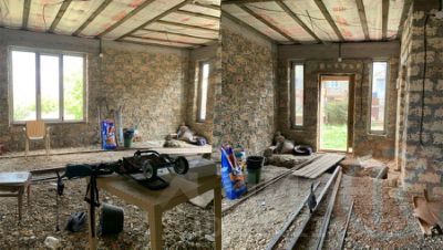 Свободная планировка позволяет адаптировать пространство под ваши нужды: две комнаты, студия-зал, душевая комната. Дом требует ремонта.