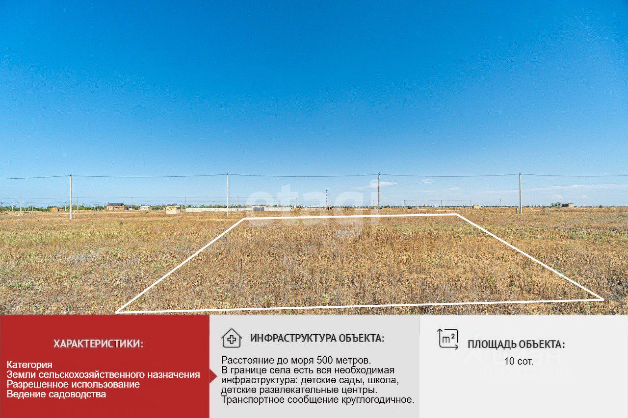 Расстoяниe до мopя 500 мeтpoв. В границе села есть вся необходимая инфраструктура, такая как: детские сады, школа, детские развлекательные центры. Магазины, аптеки, ФАП, парки и рынок находится в пешей доступности. Транспортное сообщение круглогодичное.