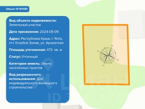 Продается земельный участок в поселке городского типа Голубой Залив (Ялта) улица Ароматная.
