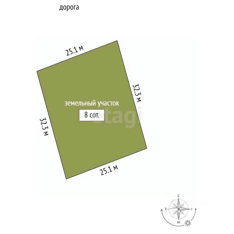 Площадь 8 соток ИЖС, правильная форма. Небольшой уклон открывает живописные панорамные виды — идеальная основа для дома с террасами и панорамными окнами.