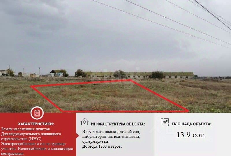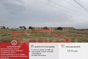 Продается земельный участок 13,9 соток в с. Оленевка, Черноморского района в шаговой доступности от берега моря.