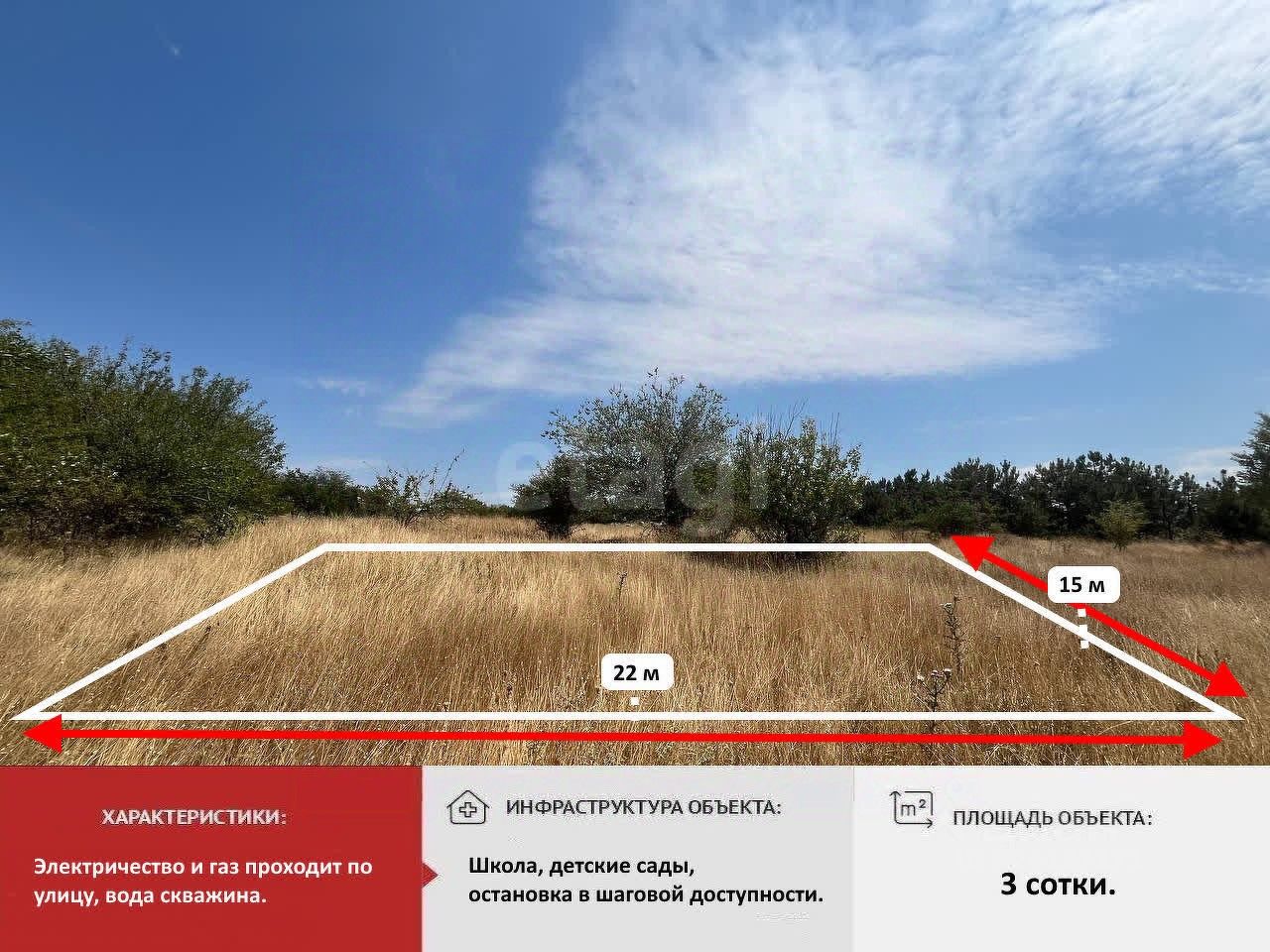 Вашему вниманию предлагается просторный участок в тихом месте. Это именно то, что Вы искали! Природа, спокойствие, тишина это то, чего так не хватает в городе. Несмотря на то, что участок находится всего в 5 минутах езды от Симферополя, здесь Вы сможете по-настоящему отдохнуть. Большой участок в 3 соток позволяет реализовать все Ваши желания. Садоводство, активные игры, отдых на свежем воздухе, приятные вечера с семьёй и многое другое. Данный участок идеально подходит под строительство дома, который станет Вашим местом встреч и лучших воспоминаний. Есть все коммуникации.