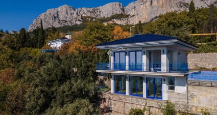 Продажа двухэтажного дома с бассейном, на участке 25 соток в живописном поселке Береговое. С террас дома открываются впечатляющие виды на море и гряду скалистых гор Ай-Петри.