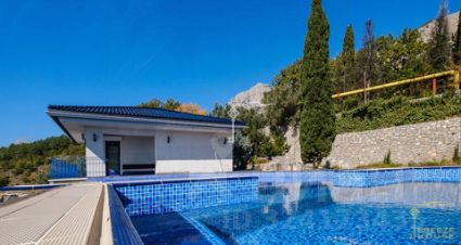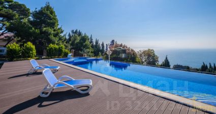 Перед домом - взрослый и детский бассейн с морской водой и противотоком с потрясающим видом на море. Вокруг бассейна уложен немецкий полнотелый суперкачественный декинг.
