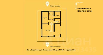 -Второй этаж: спальня, гардеробная, кухня, санузел 33,9 м² + терраса.