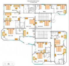 Дом состоит из разных комнат, разной площади и конфигурации.6 двух комнатных с балконами и террасами, 21 однокомнатных с балконом", 2 холла на первом этаже, бильярдная, постирочная, гладильная, котельная. Большинство комнат оборудованы санузлами, набором необходимой мебели и техники (кондиционер, ТV, холодильник).