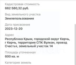Предлагаем к продаже земельный участок в живописном месте — СПК "Вулкан", проезд Счастья, 14 (Керчь).