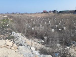 На участке забиты бетонные сваи 100 штук для строительства.