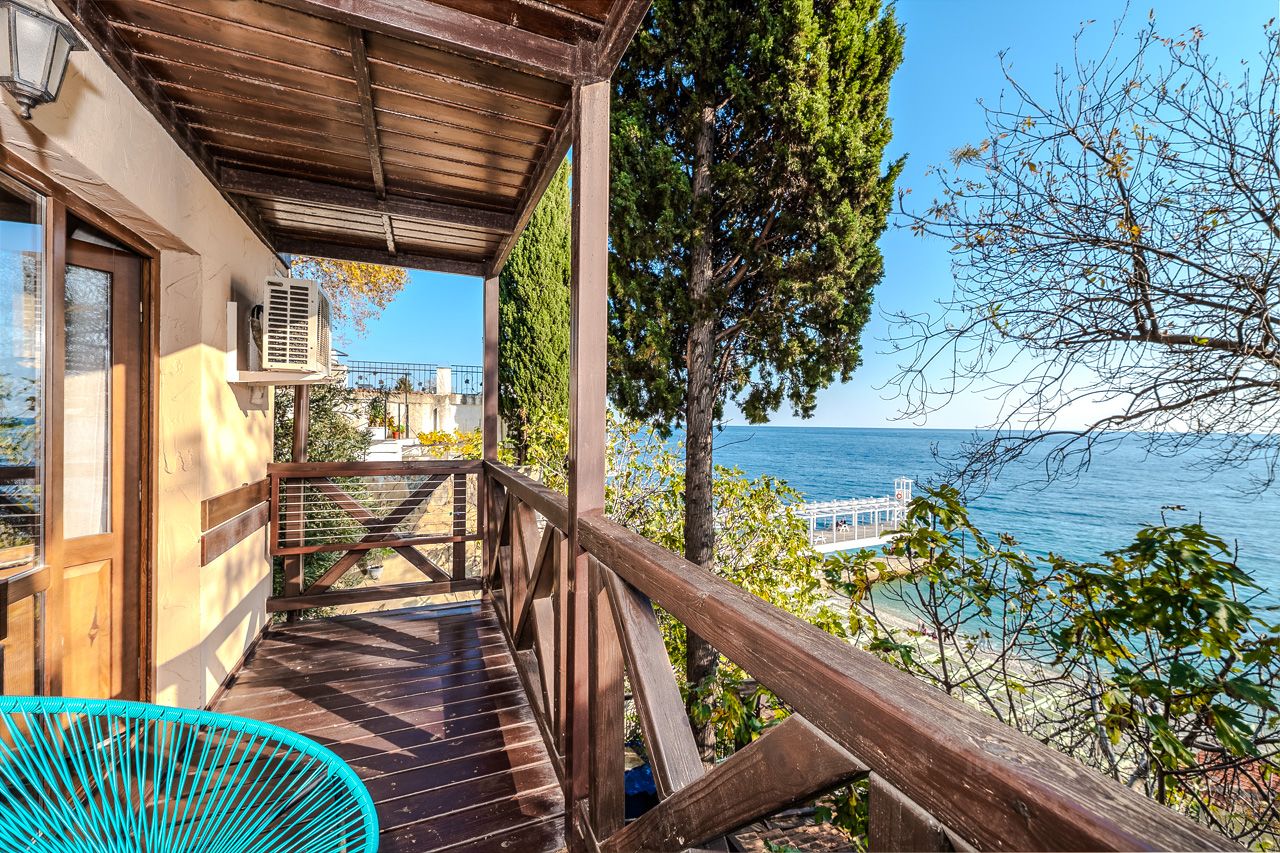 Гостиница расположена на берегу моря — прямо над Массандровским пляжем.