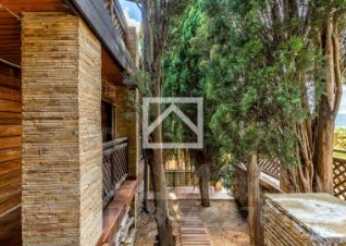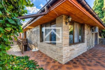 Основной каменный дом выполнен из вручную тесанного природного камня, а крыша покрыта немецкой черепицей, создавая ощущение надёжности, элегантности и гармонии с окружающим ландшафтом. Каждая деталь продумана для комфорта и эстетического удовольствия, сочетая стиль и функциональность.