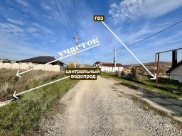 В продаже ровный, просторный участок 11 соток для индивидуального жилищного строительства в ближайшем пригороде Симферополя. Имеет выход на две стороны, что дает дополнительный комфорт, а также соседство только с двух сторон. По фасаду проходит электричество, газ, центральный водопровод; в планах — центральная канализация. Вокруг живут и строятся соседи.