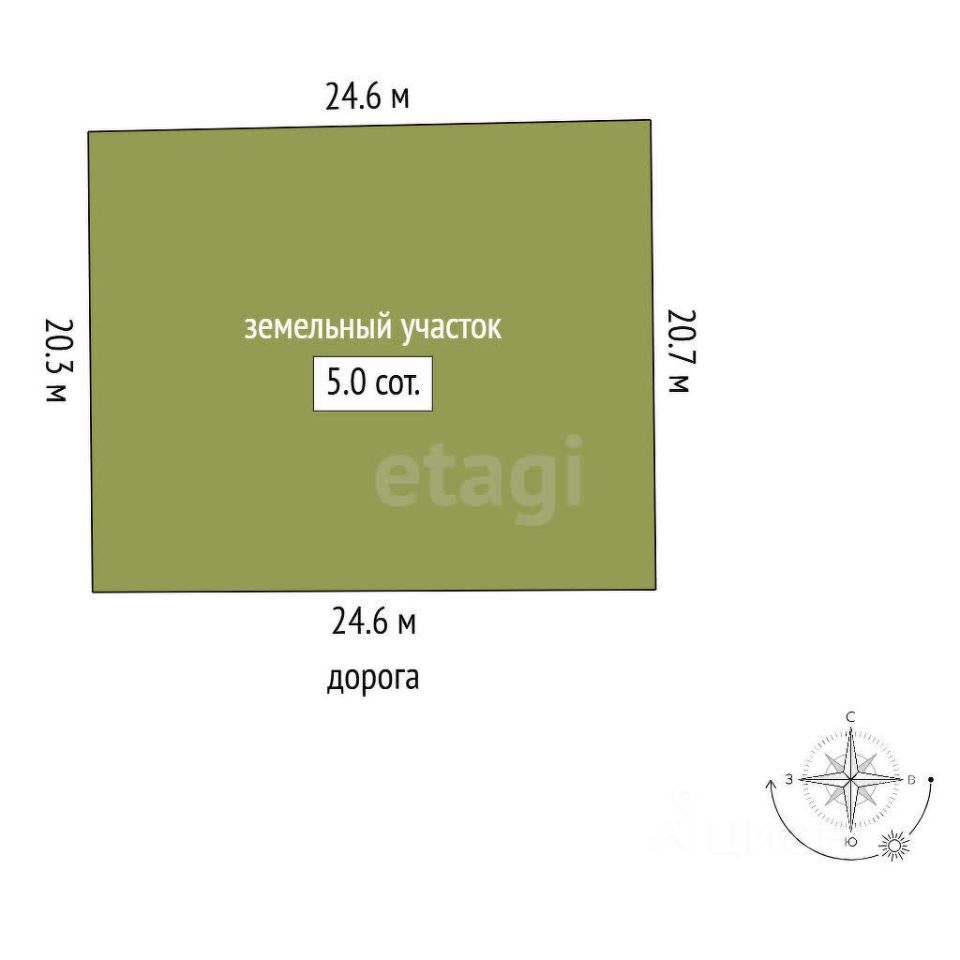 Площадь: 5,02 соток (ровный, прямоугольной формы)